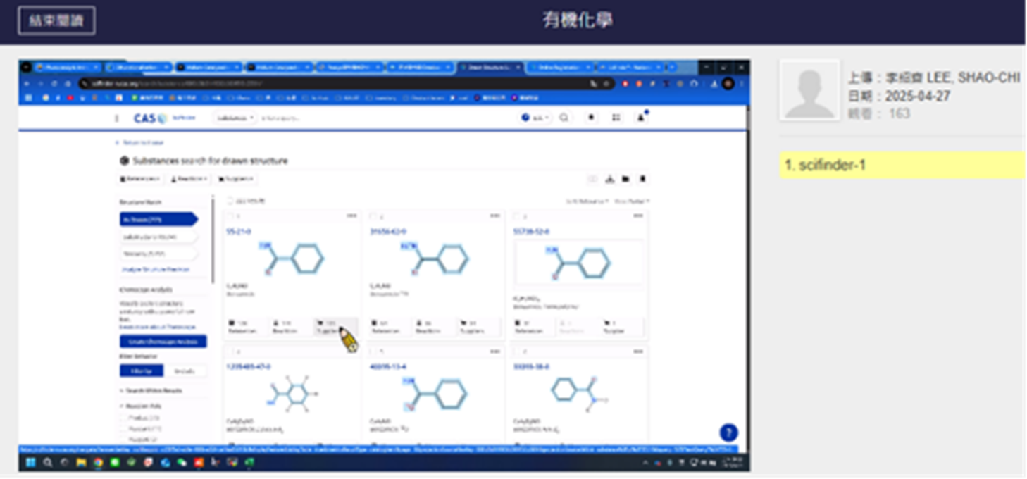 本課程針對植物病理學系學生設計,以專題導向學習模式引導學生理解有機化學的核心概念。課程中,學生不僅學習繪製有機分子結構與推導反應機構,亦透過 ChemSketch、Avogadro 與 SciFinder 等工具,進行文獻查找與合成路徑規劃。課程亮點在於學生能將專題題材與實驗課內容相結合,嘗試從「如何設計反應」延伸到「為何進行合成」,展現深層次的理解力。期末專題成果顯示,多數學生能清楚繪製完整結構並提出具體的合成策略,並補充藥理活性與安全性資料。學生回饋顯示,課程有效提升其自主學習、邏輯推理與跨域應用能力,並激發對化學的興趣與長期動機,成功落實「從做中學」的教學精神。