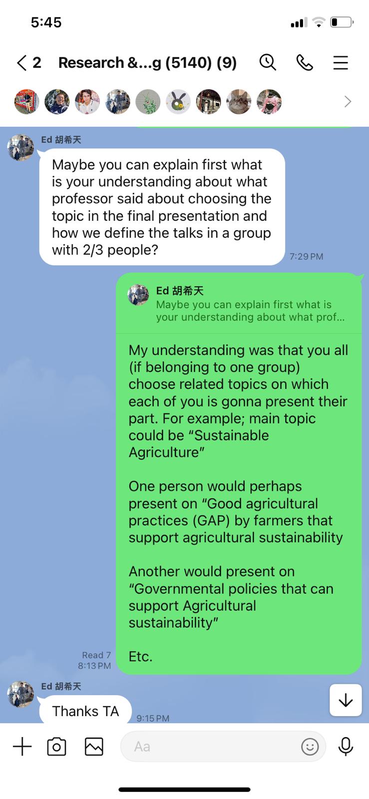 本學期課程引入專題導向學習法,學生以小組合作方式進行專題製作,增加英語互動機會,並提升跨域學習、英文溝通與團隊合作能力。課程小組專題規劃包括研究方法與科學寫作主題的引導討論、國際研討會論文摘要撰寫與審稿,以及國際研討會口頭發表。由於本課程為EMI課程,學生在引導討論、論文摘要撰寫與審稿回饋,以及口頭發表過程中均使用英文,進一步強化其英文口說與寫作能力。透過專題執行,學生能整合課堂與演講內容,並應用於自身學士或碩士論文,亦在合作過程中拓展對森林與相關議題的多元視角。整體而言,課程兼具實用性與啟發性,能有效支持研究生在學術寫作與研究技能上的發展。本課程成果包含:1場業師演講、8週引導討論,以及1場專題發表(共4組報告)。