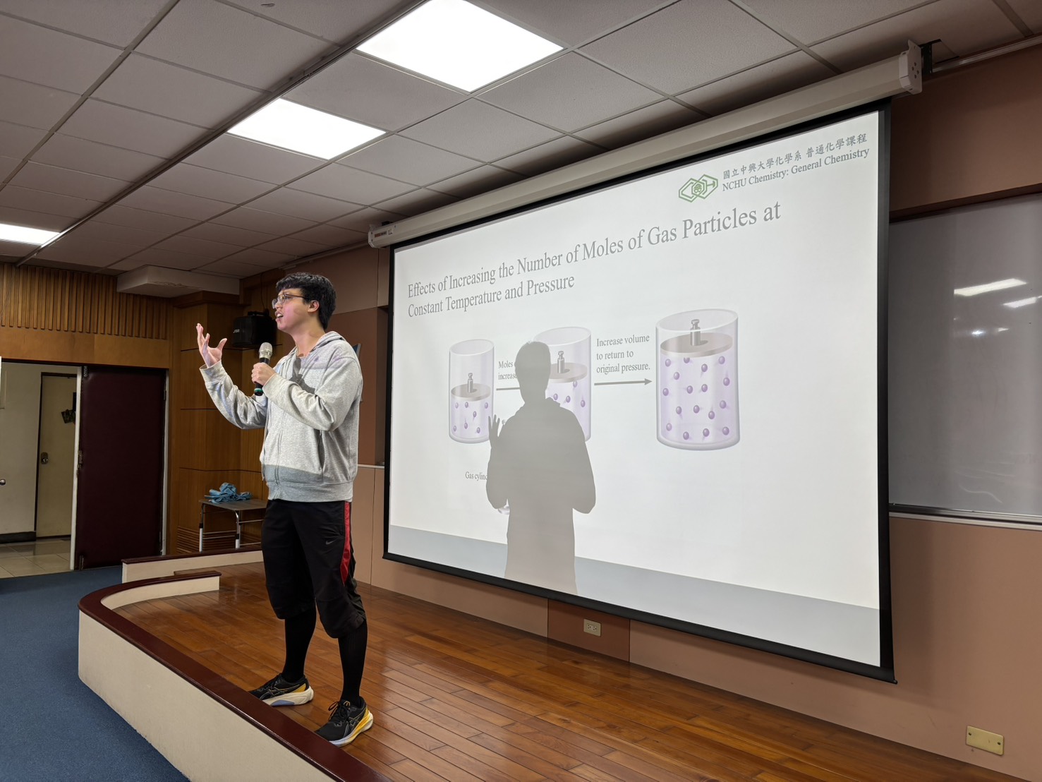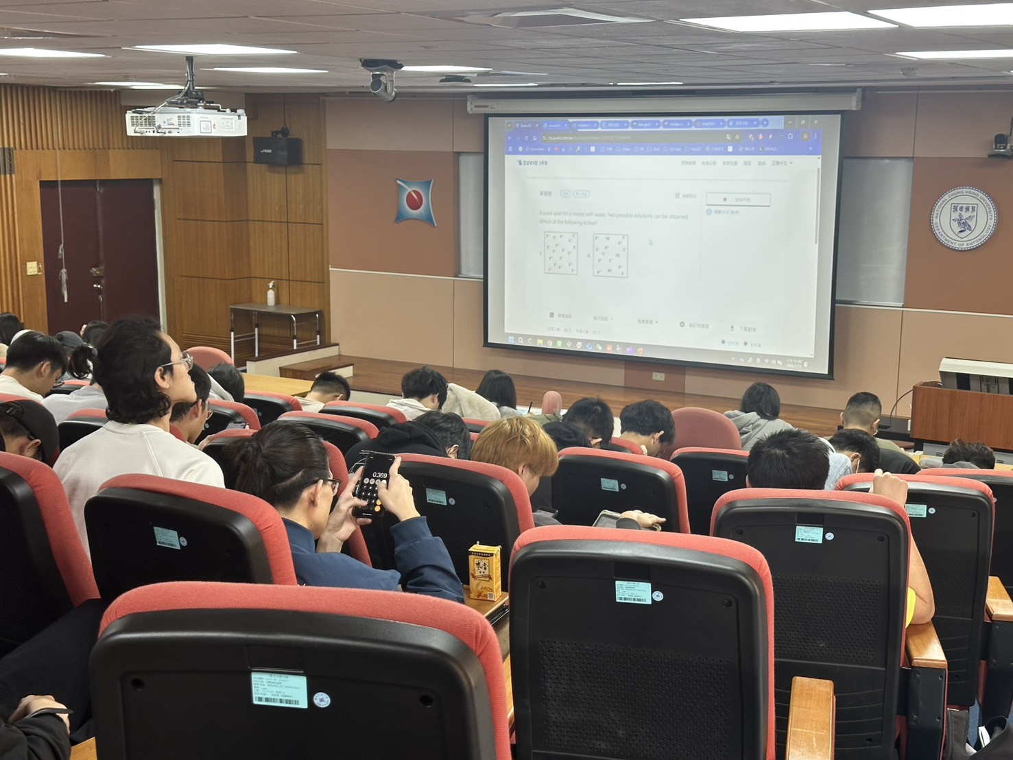 本課程於113-2學期全面導入翻轉教室教學模式,涵蓋普通化學核心單元,包括溶液濃度、氣體行為、原子結構與週期趨勢、化學鍵結等內容。課程設計以「課前數位預習、課中互動應用」為主軸,學生於課前透過預錄影片、術語表及範例題目進行自學,建立基礎知識;課堂則結合 Zuvio 即時測驗、小組討論、白板示範及模擬軟體,進一步鞏固與應用。