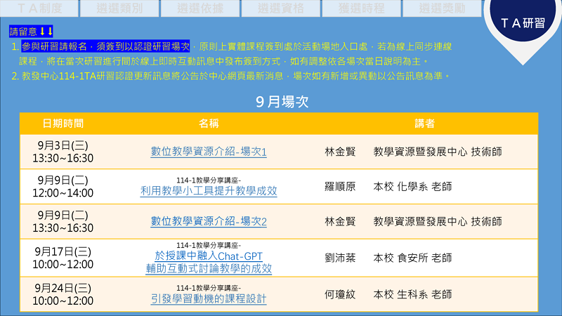 - 114-1校院級課程TA研習認證場次&優良TA遴選簡報_20251022更新