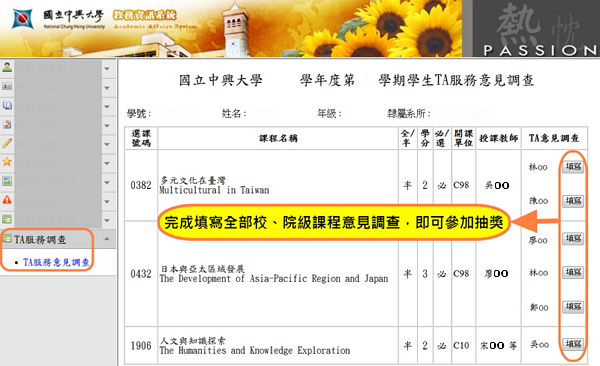 填答網址:興大單一入口→教務資訊系統→TA服務調查→TA服務意見調查