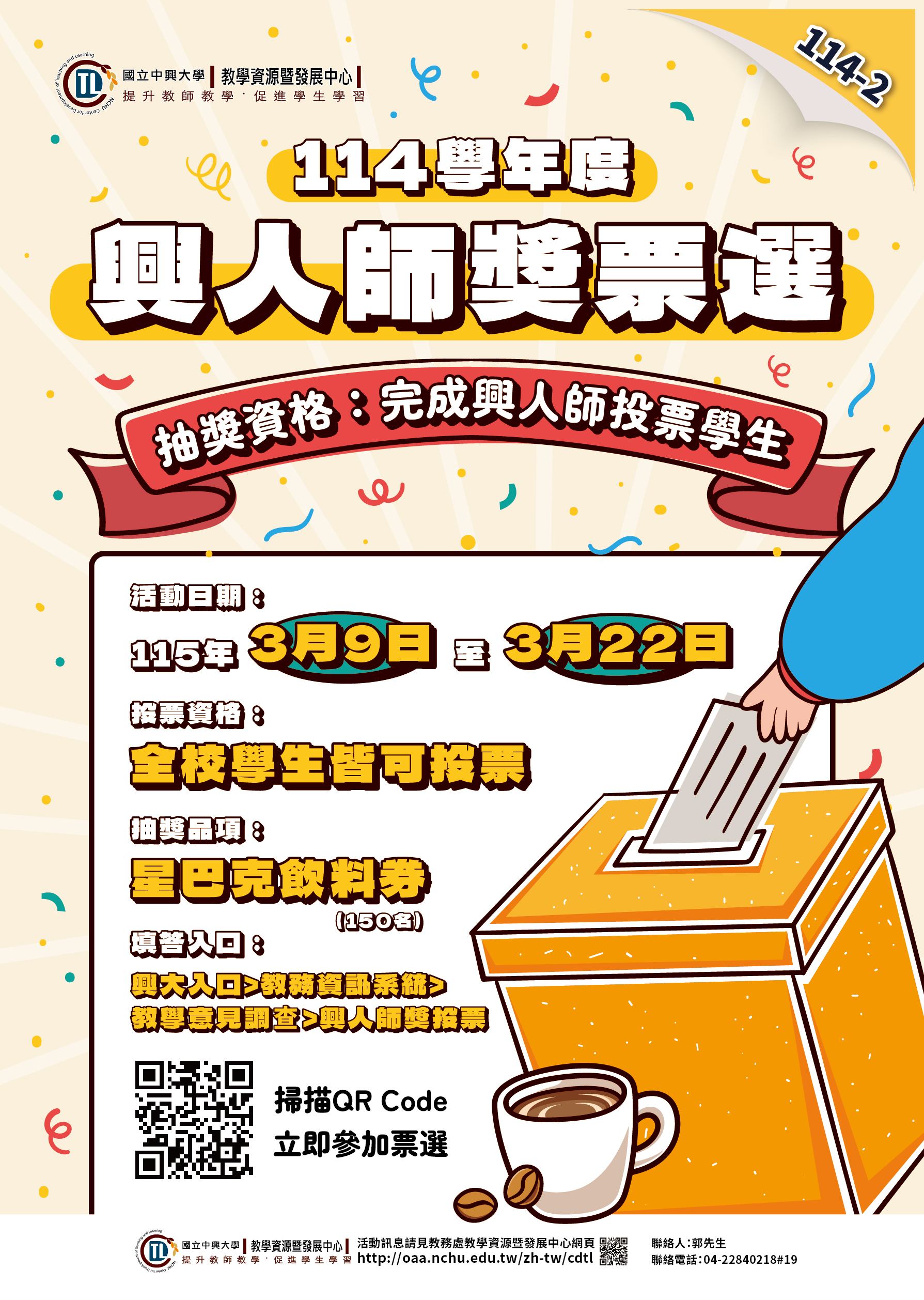 - 114學年度「興人師獎」網路票選開跑!