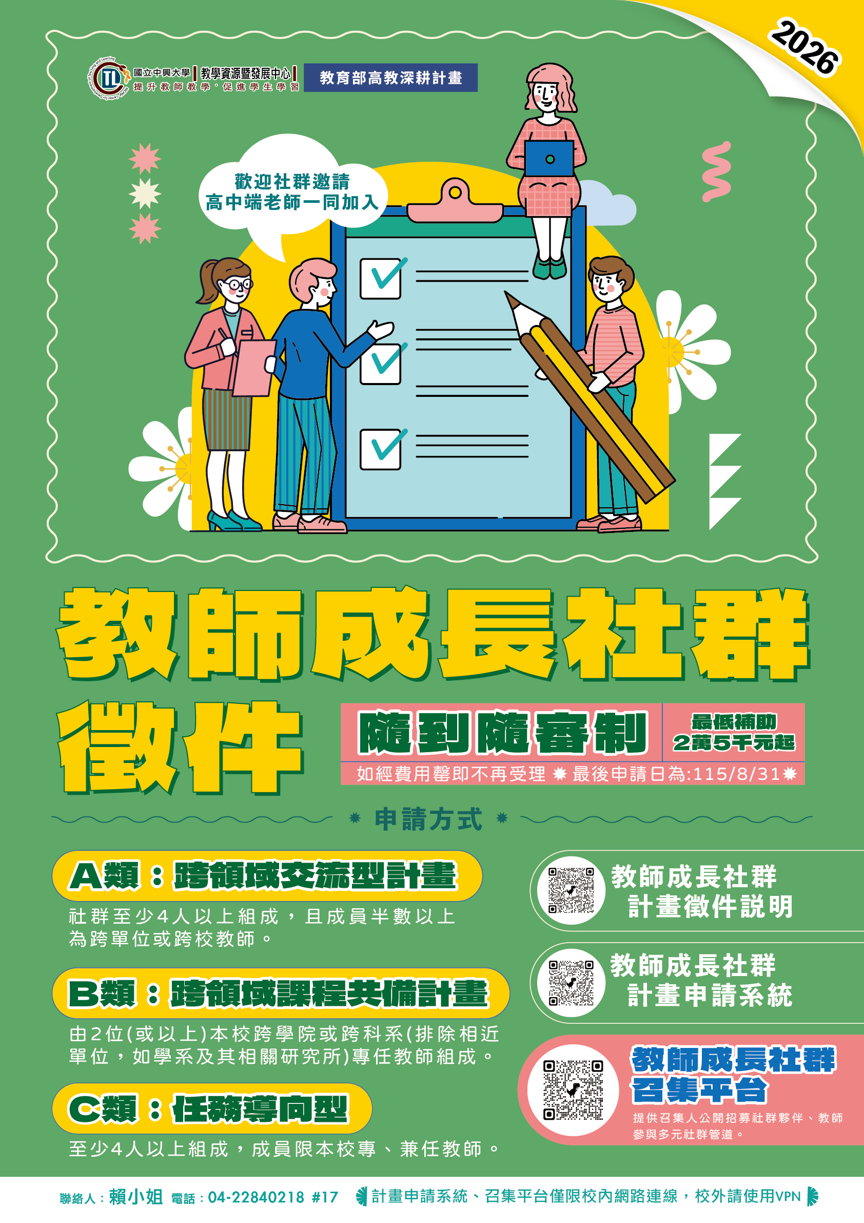 - 受補助社群應至遲於116年度申請跨領域導向學習計畫並開設課程。