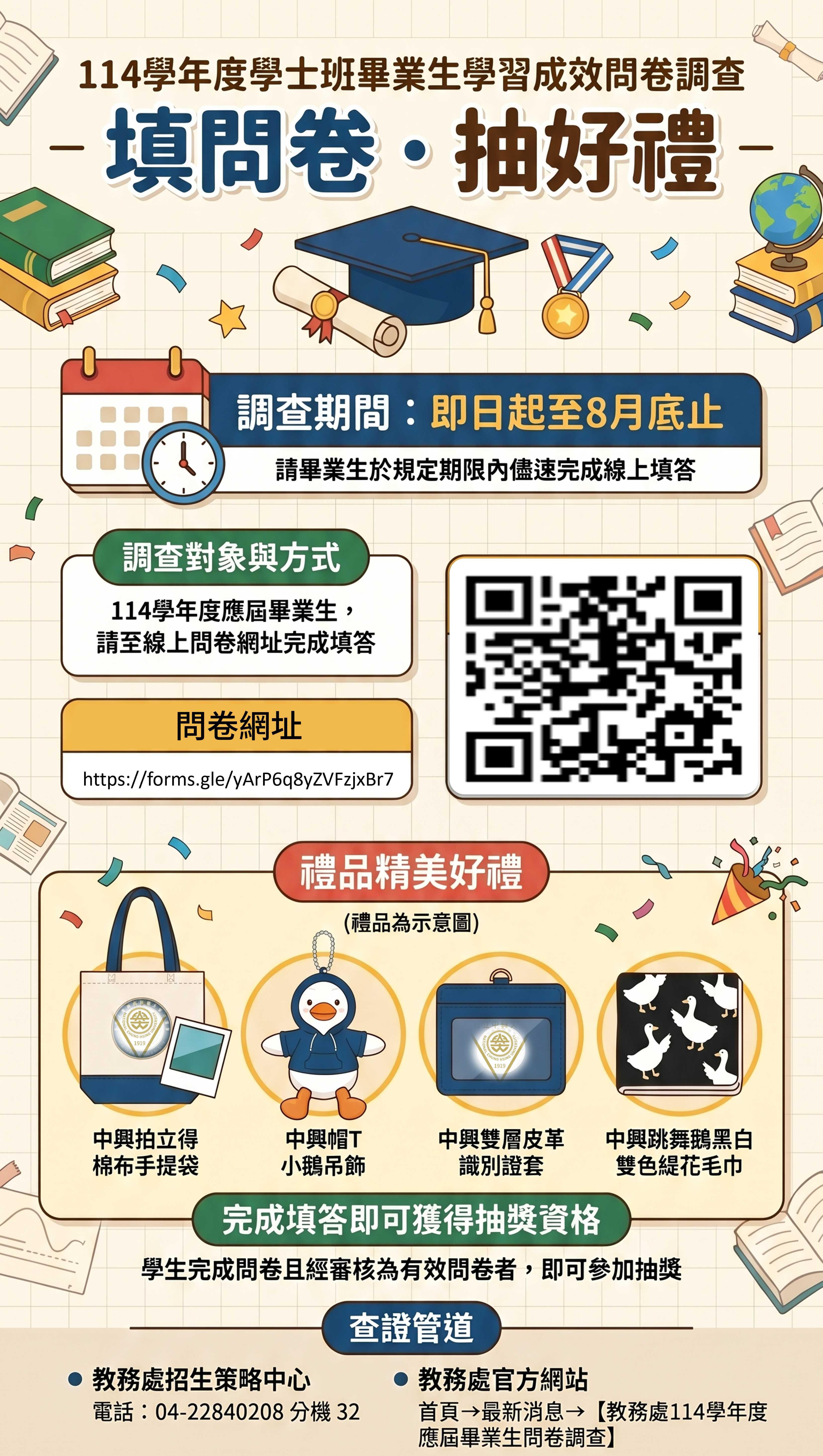 教務處114學年應屆畢業學生學習成效問卷★調查至08月底☆,敬邀學生踴躍上網填答