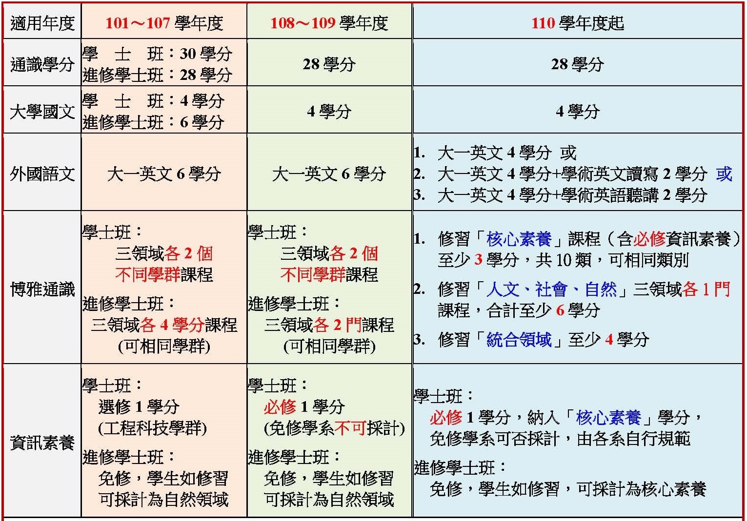通識修課說明 (歷年畢業條件)