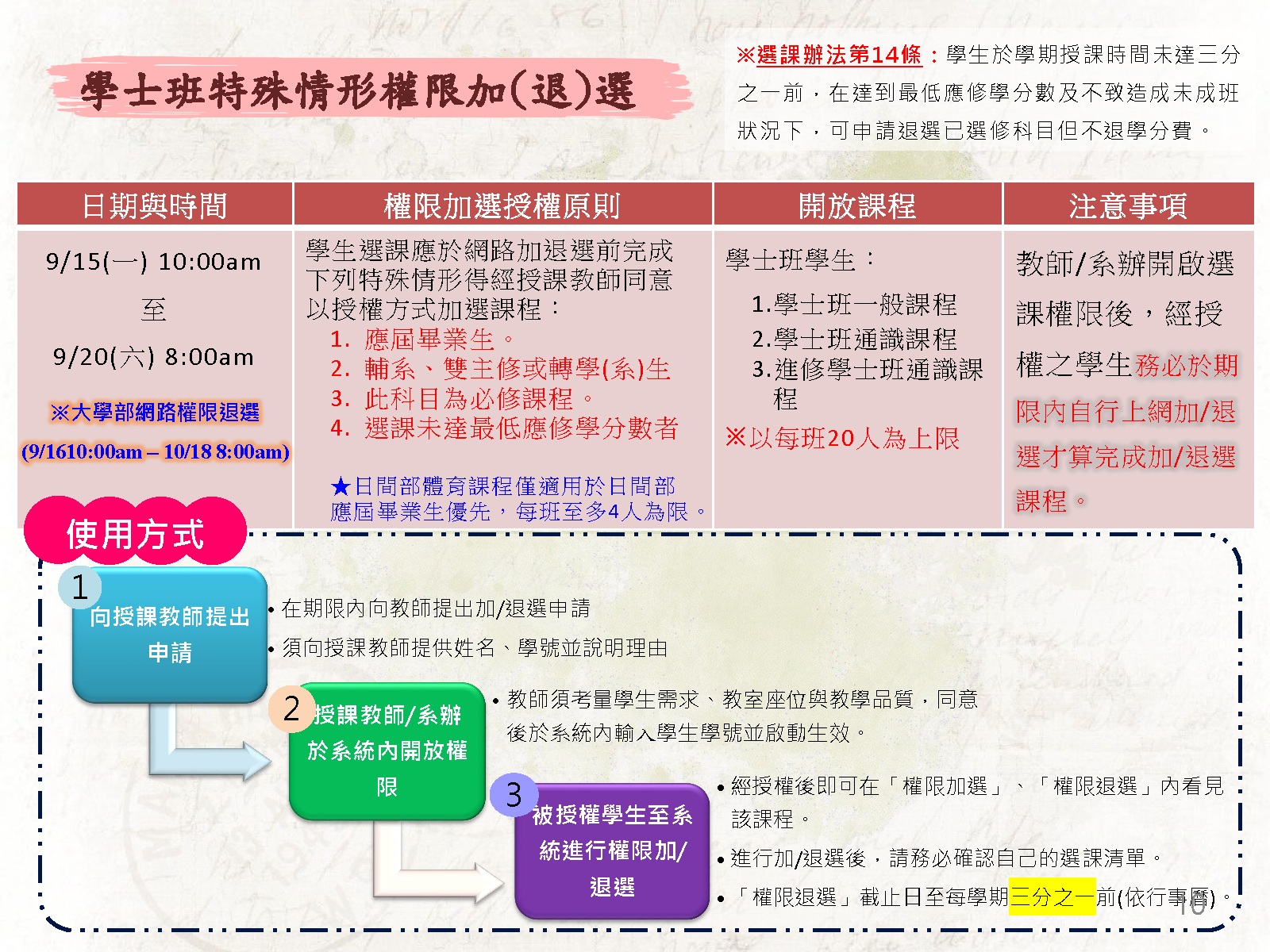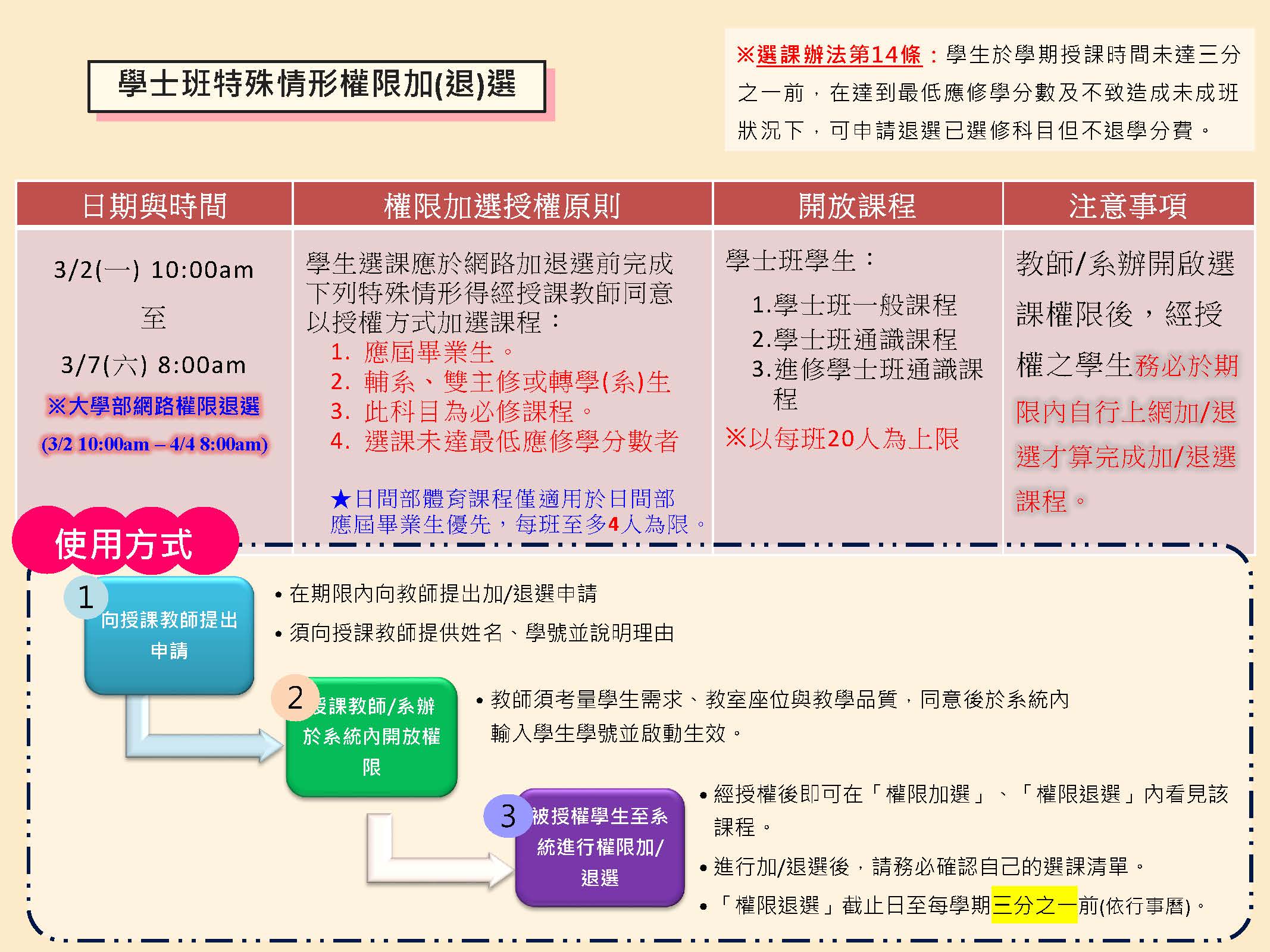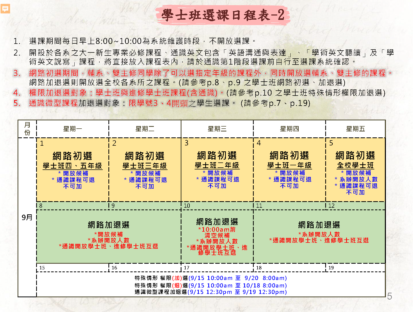 6.有特殊權限加(退)選需求者,須經授課教師同意並於選課系統做確認。